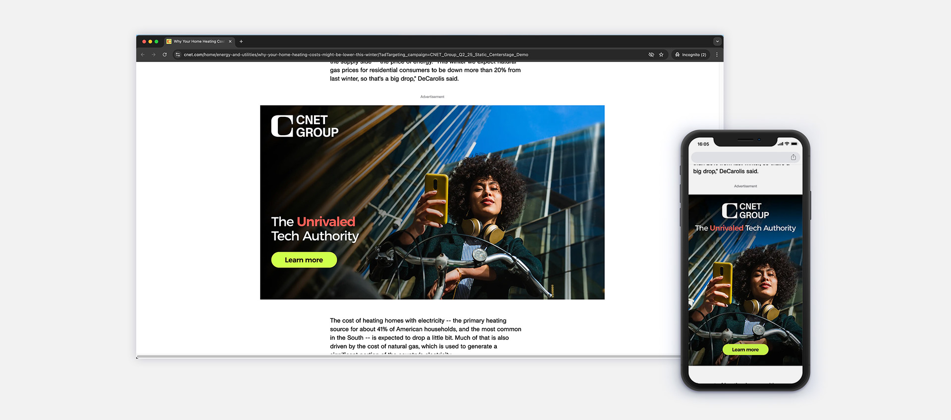 The Centerstage is a bold, high-impact ad experience that lives seamlessly within editorial content. Designed with a responsive 16:9 ratio on desktop and a striking 2:3 ratio on mobile, this custom unit commands attention without disrupting the flow of the page. Its generous size and prominent placement ensure your brand stands out—delivering storytelling and product discovery at the heart of the user experience.